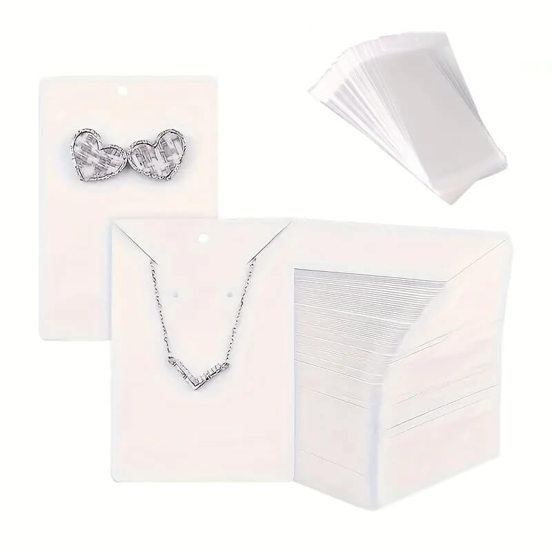 50pc White 3.5×2.3in Display Cards with bags Earring Necklace