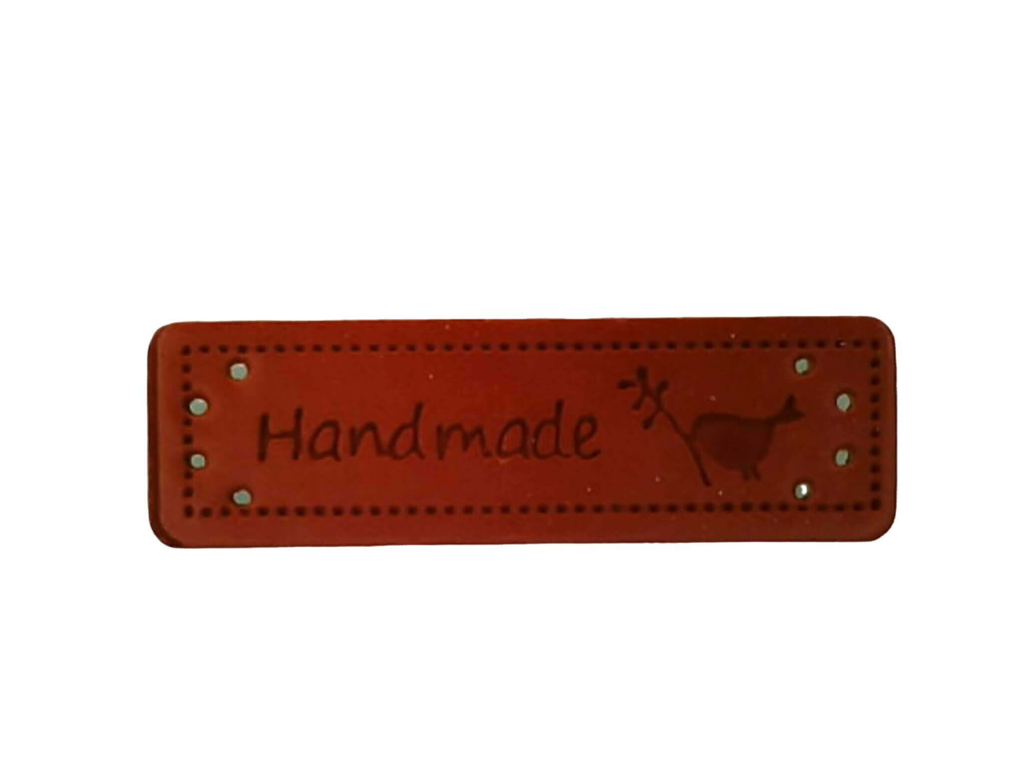 30ps 5×1.5cm Handmade with Bird Brown PU Leather Sew on