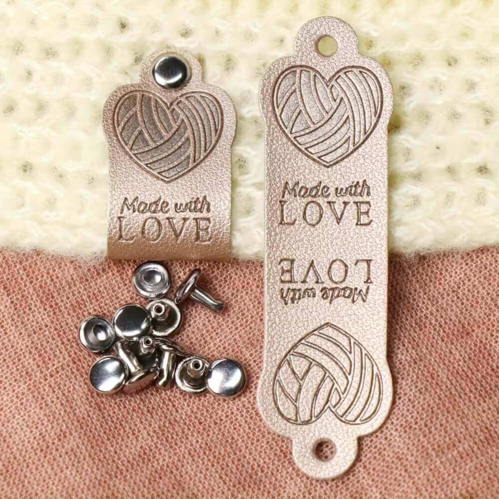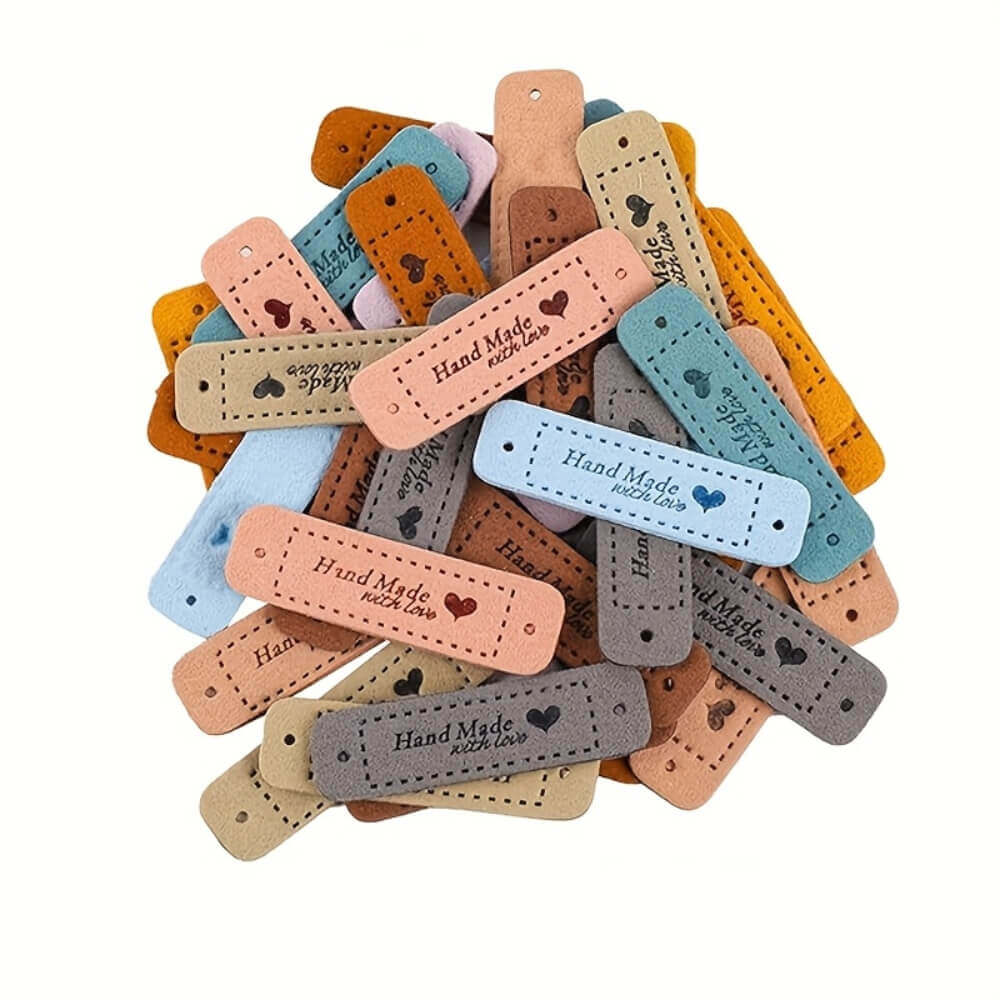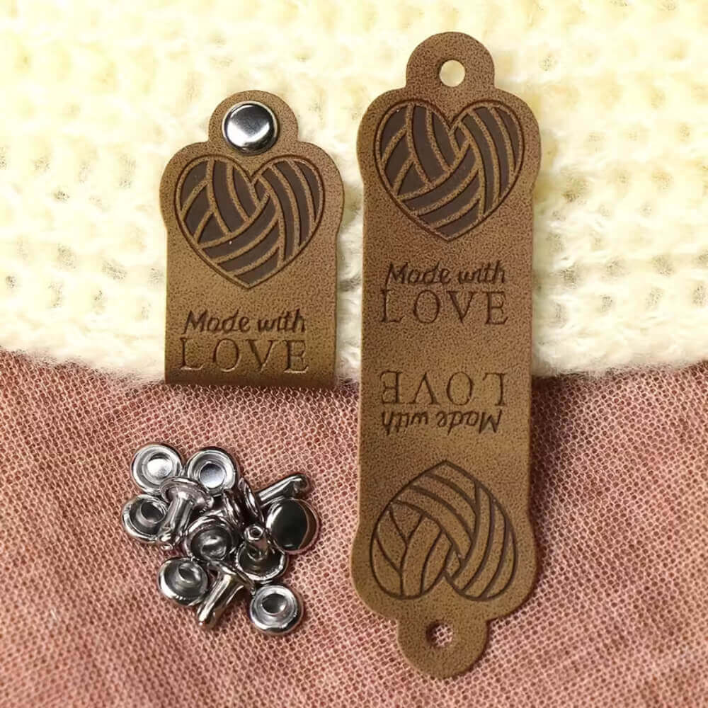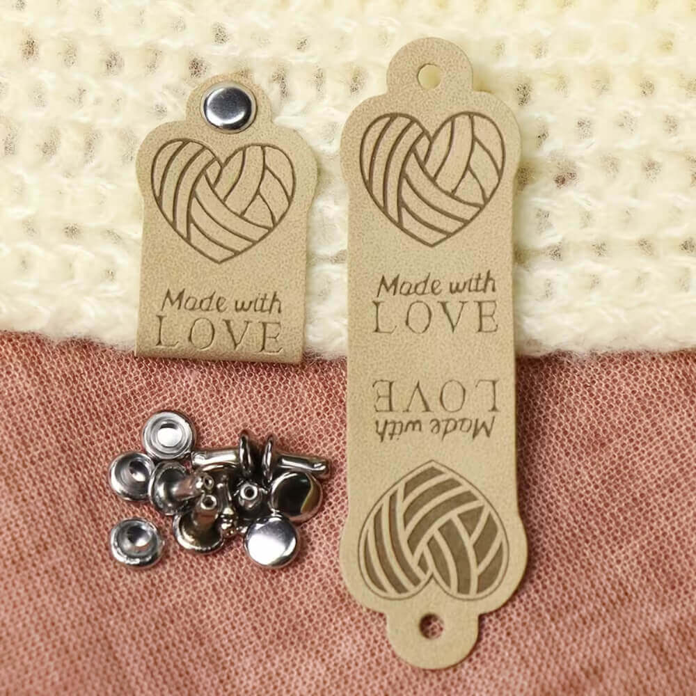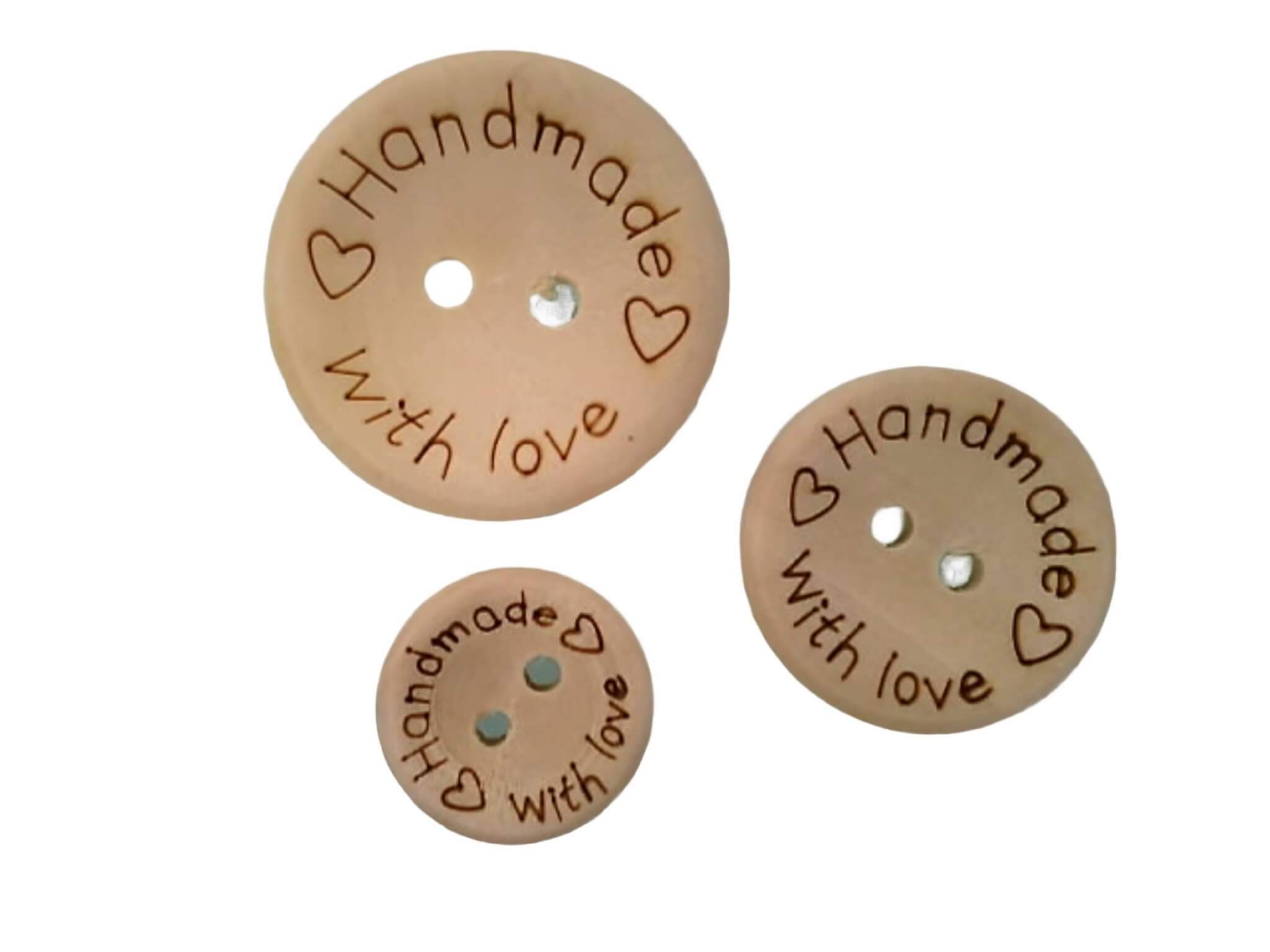 50pc Tan Button Handmade With Love Sewing Label Mixed 15 20 25mm