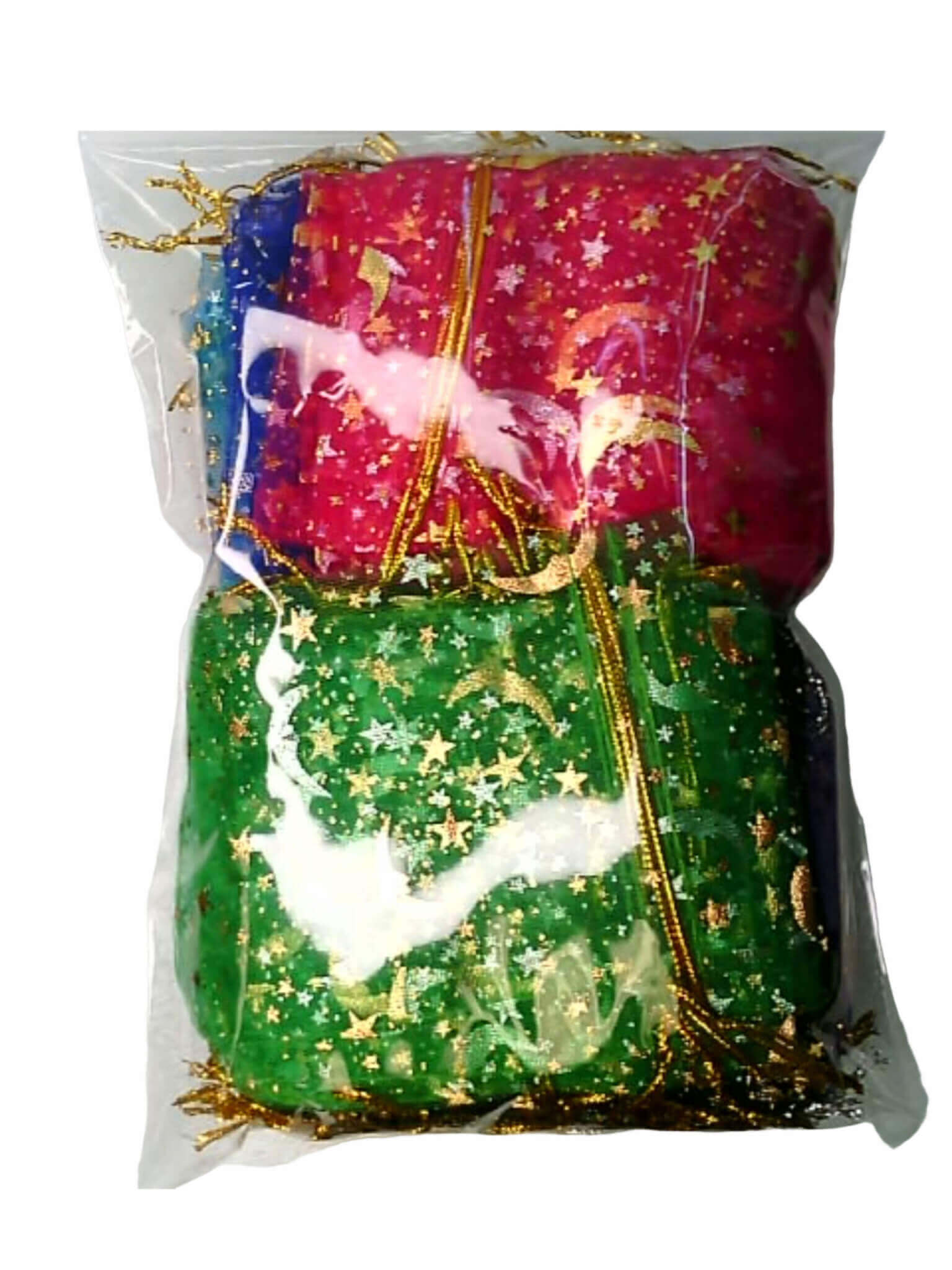 100pc 2.7×3.5 Moon & Star Mixed Colors Drawstring Organza Bag