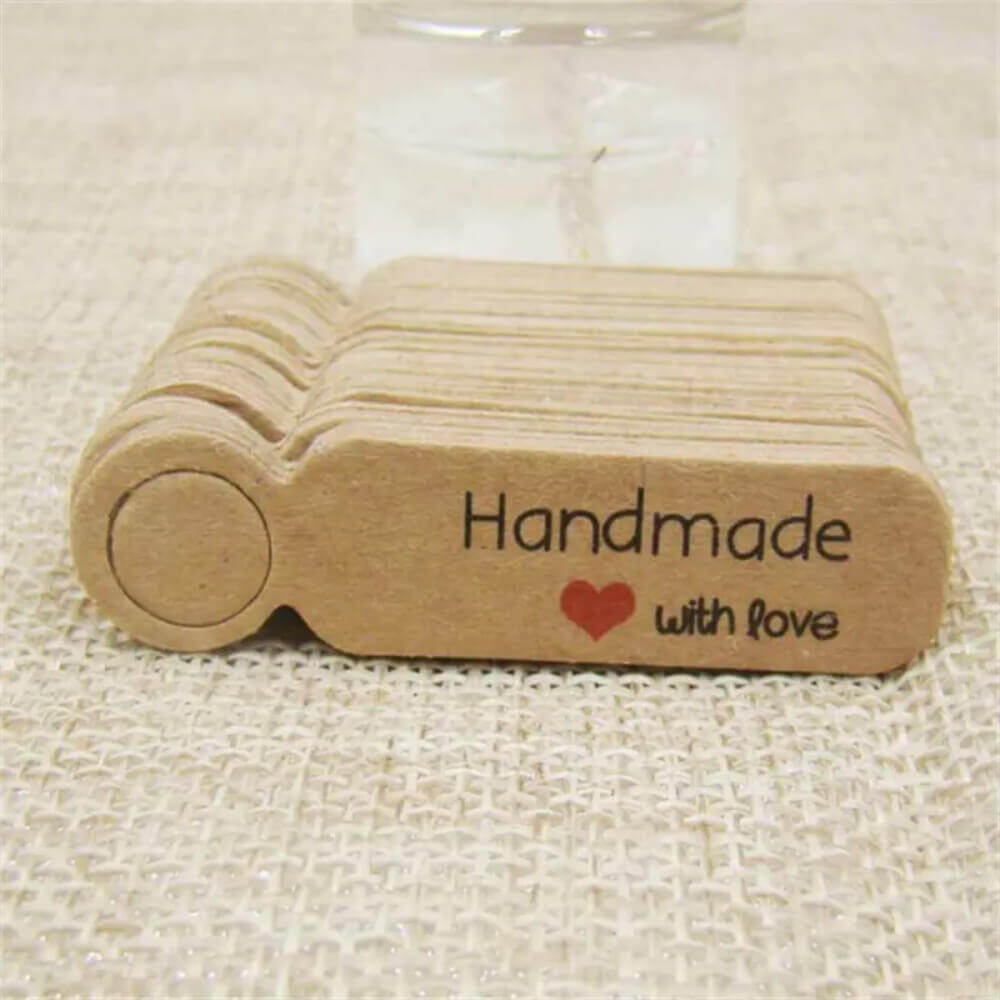 100pc Brown Handmade With Love Tags Oval 0.5×2″