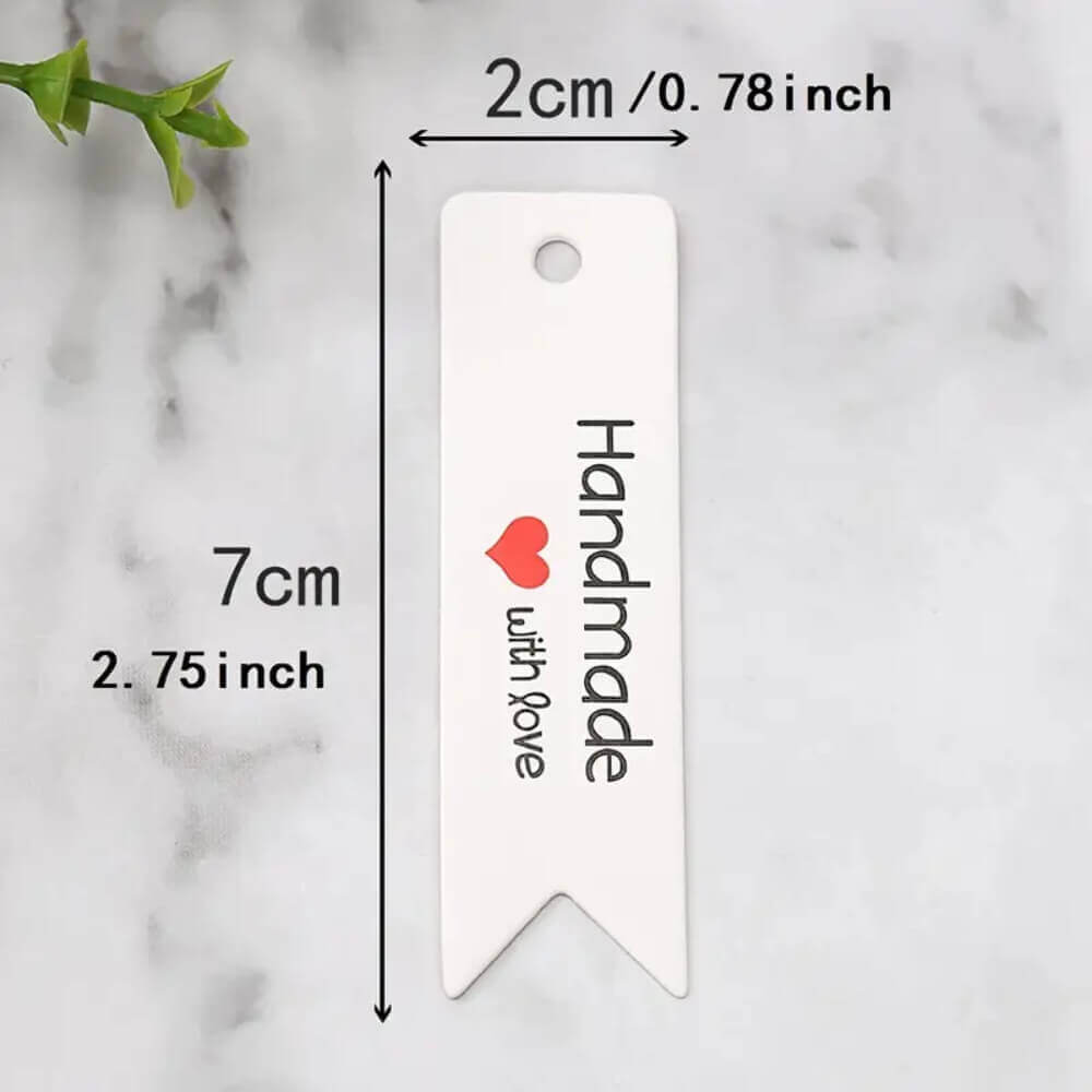 100pc White Handmade With Love Tags Ribbon 0.75×2.75″