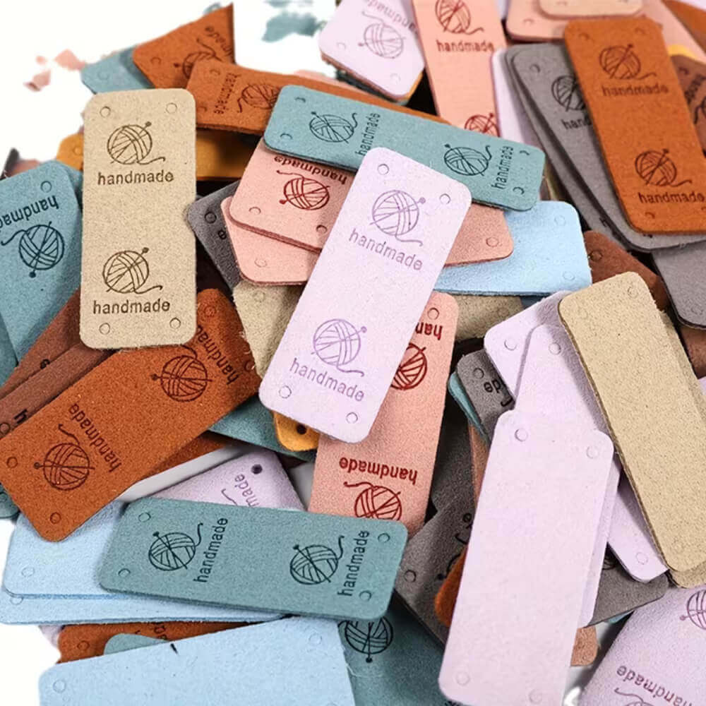 20pc Folding Sew On Label Yarn Ball Handmade 2x5cm Assorted Colors
