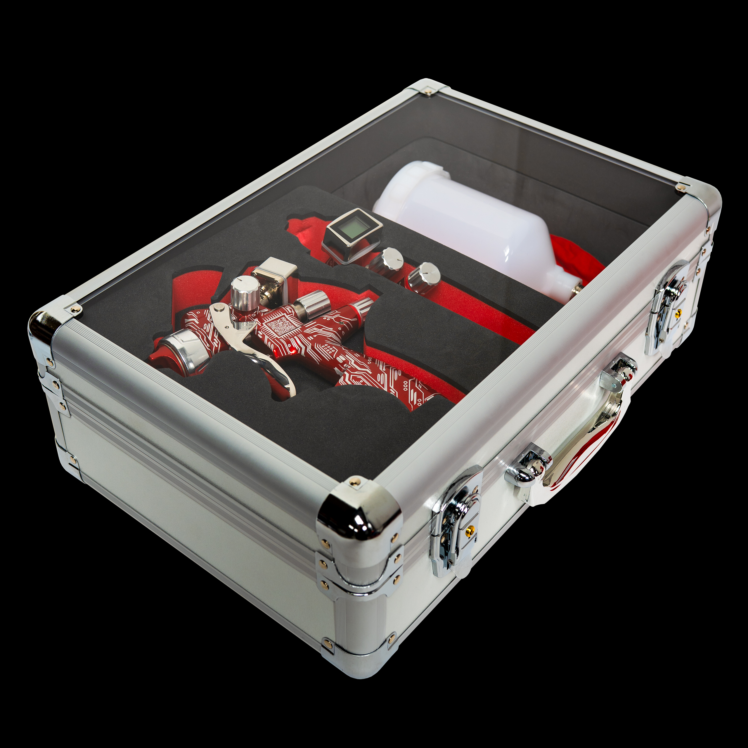 ANi TRONIC Spray Gun (Base & Clear) Kit, with Quick Release Click-To Digital Gauge (BAR) with 5 year warranty! Supreme quality. Deluxe Carry Case