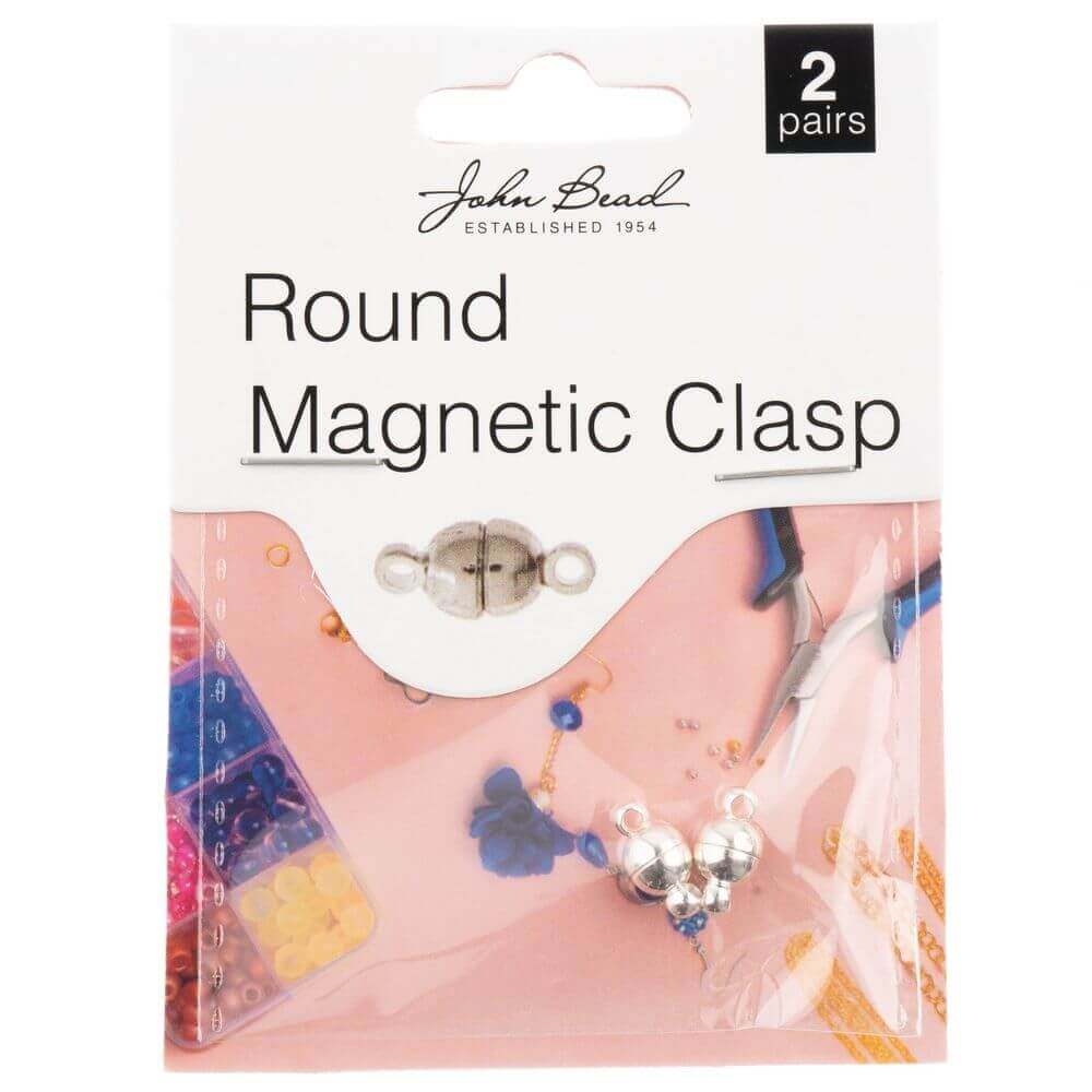 John Bead Round Magnetic Clasp 6×6.5mm 2 Pairs-Silver