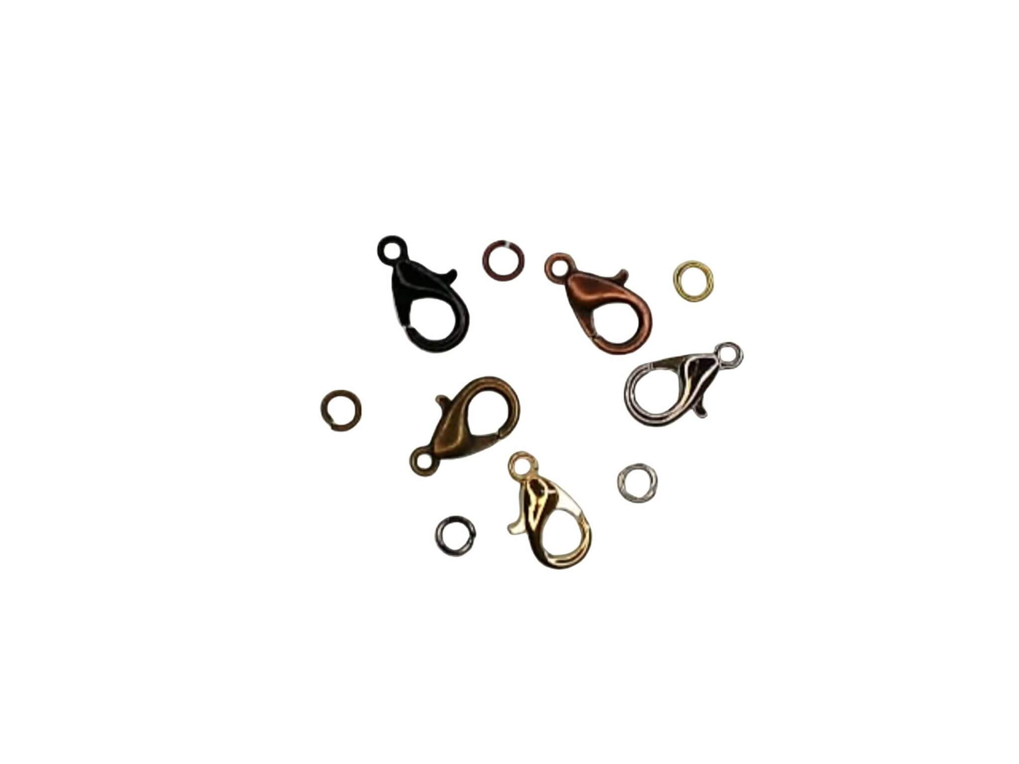 100pc 12mm Assorted Colored Lobster Clasp with 200 Jump Rings
