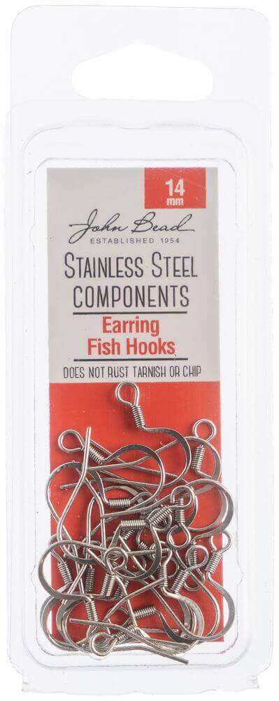 John Bead Stainless Steel Earring Fish Hook 20/Pkg-14mm