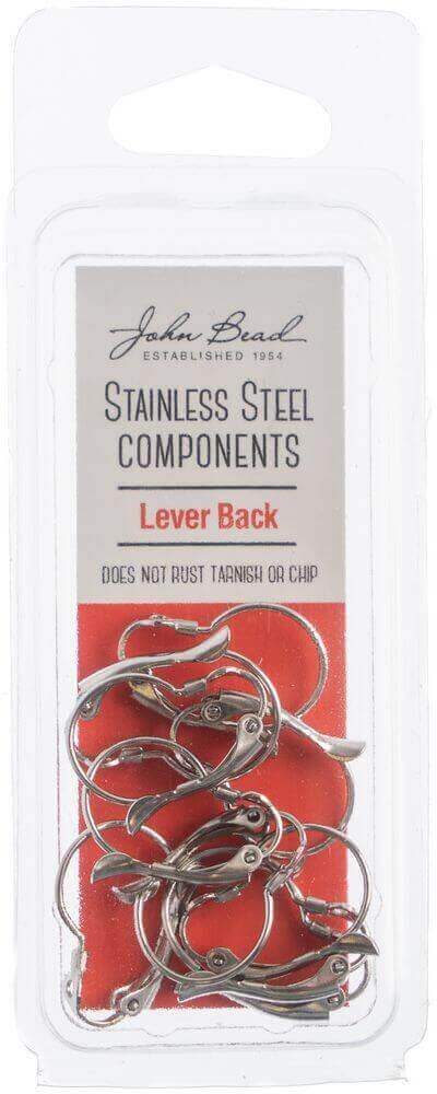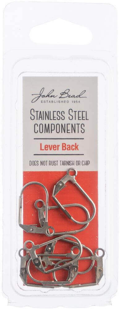 John Bead Stainless Steel Earring Lever Back 8/Pkg-12x17mm