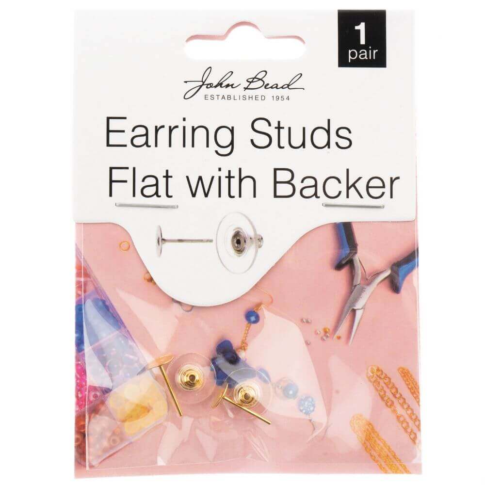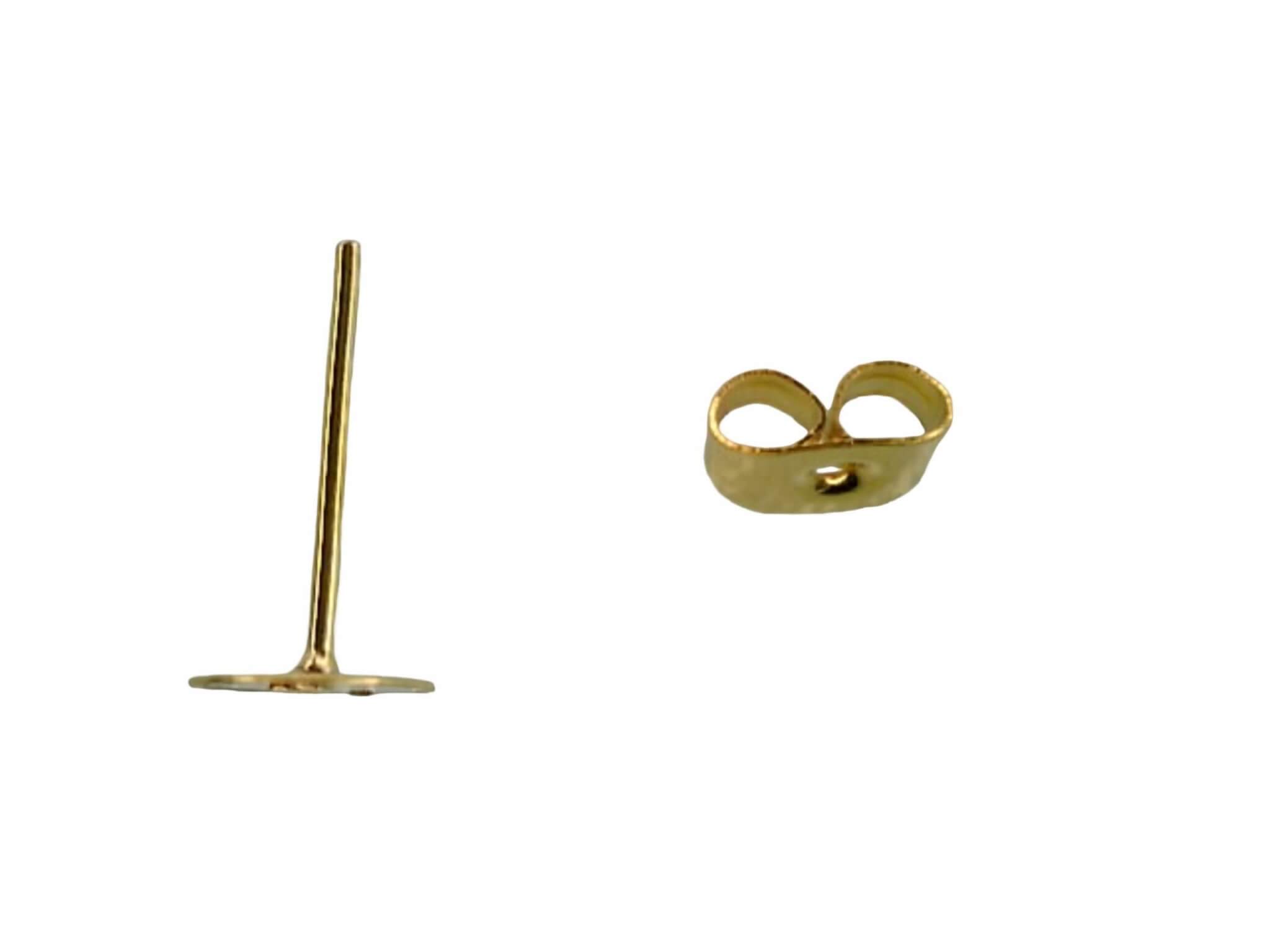 John Bead Earring Studs Flat with Barrel Clutch 12mm 1Pair-Gold