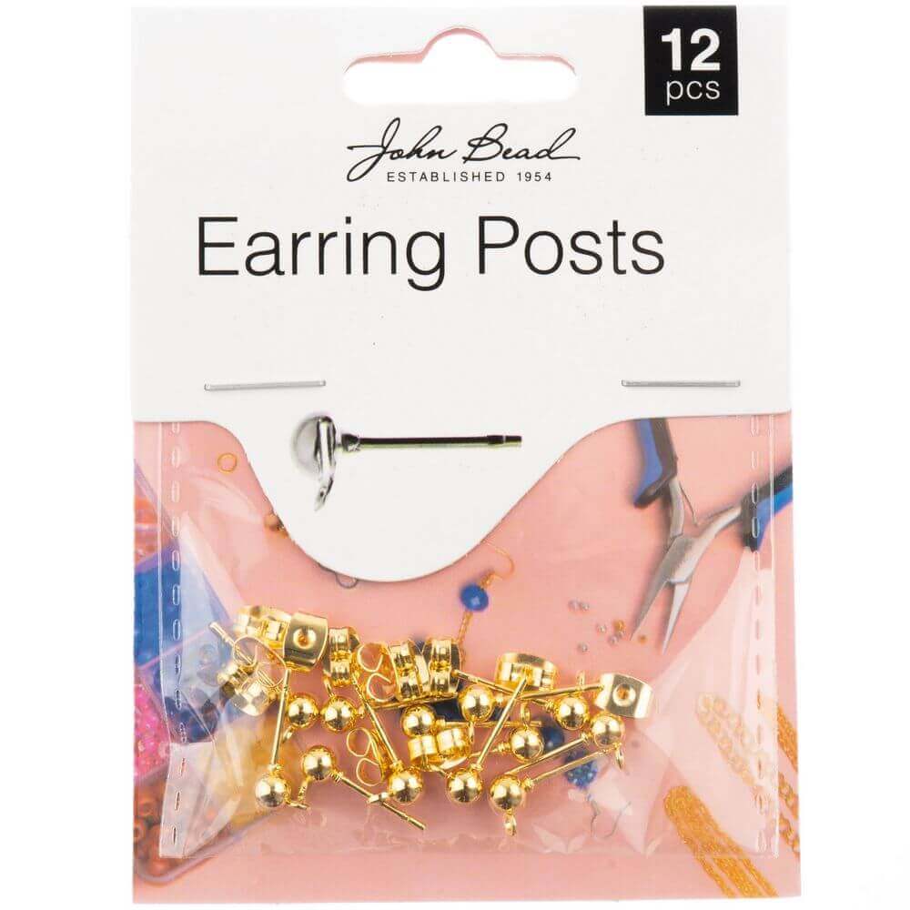 John Bead Earring Post w/5mm Ball 12/Pkg-Gold
