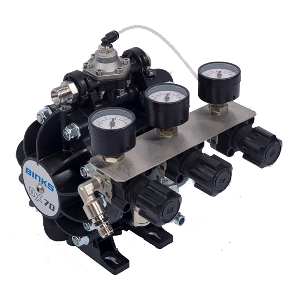 BINKS DX70 Air Operated 1:1 Ratio Diaphragm Pump with Fluid Regulator, Female Inlet / Outlet with 3 Regulators (DX70R-FF-3)
